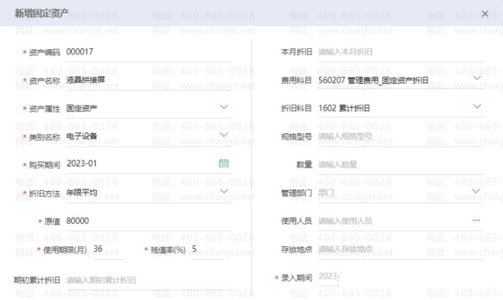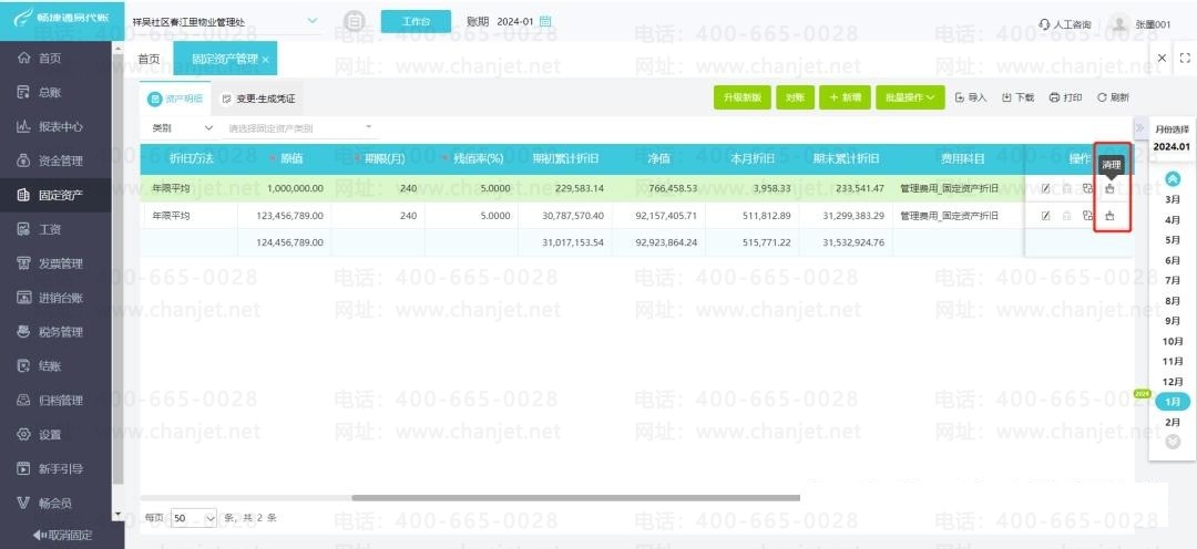 我们回到【固定资产管理】中,在录入期间后面点击小扫帚的按钮