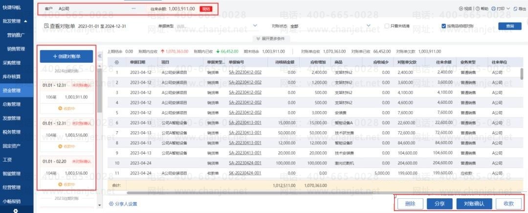 自动生成客户对账单,支持分享到微信对账