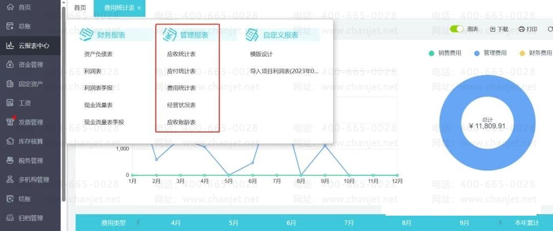 像老板比较关心的经营数据、费用数据,软件可以自动出具报表。