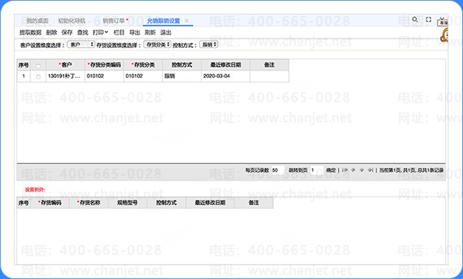 新增允销限销管理功能,可以对客户分类、客户设置允许销售的商品范围;也可以对客户分类或客户设置限制(不允许)销售的商品范围。下单时,系统根据客户自动过滤商品范围,仅显示可以销售给此客户的商品。