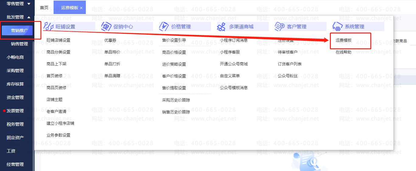 畅捷通好业财旺铺客户下单时满一定金额商家包邮,在好业财中如何设置?
