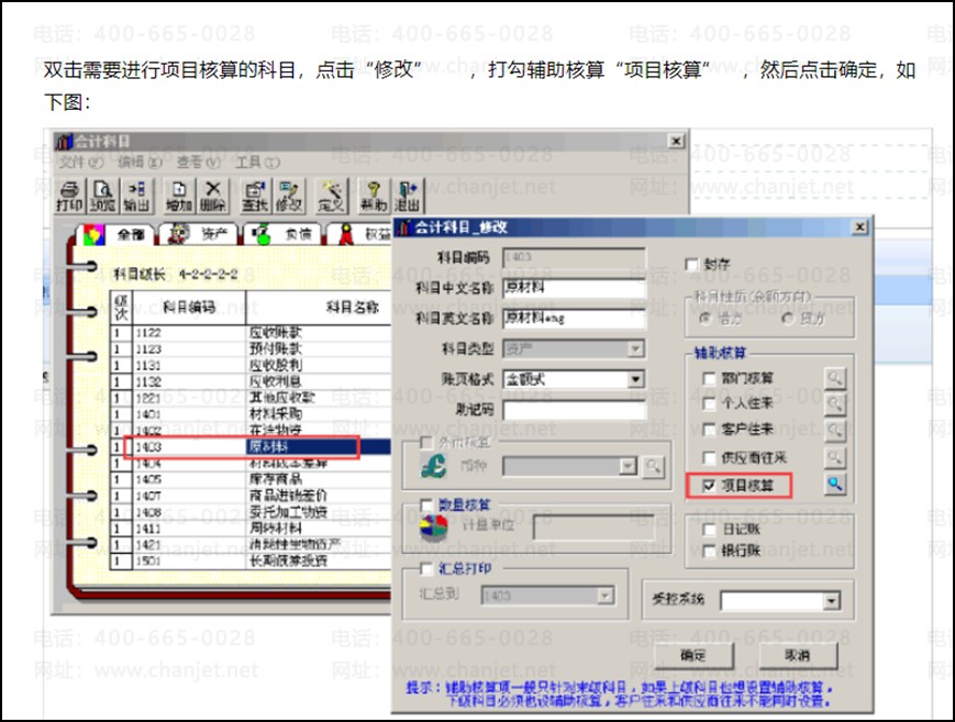 点击用友T3基础设置-财务-会计科目,修改会计科目,勾选项目核算.