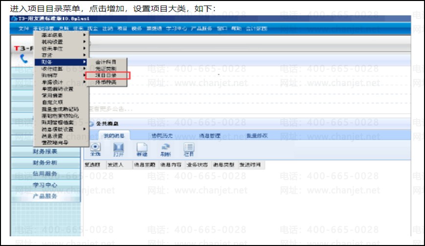 2、点击用友T3基础设置-财务-项目目录,然后点击增加按钮,定义一个项目大类名称.