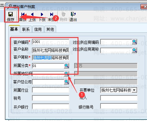客户档案有型号的也是必须输入的,我们一般录入编码、名称、简称即可,名称和简称可以是一样的,直接复制一下就可以了。增加完之后点保存,这就是一个客户档案,客户编码是没有任何限制的,长度也可以10多位,和存货档案一样。