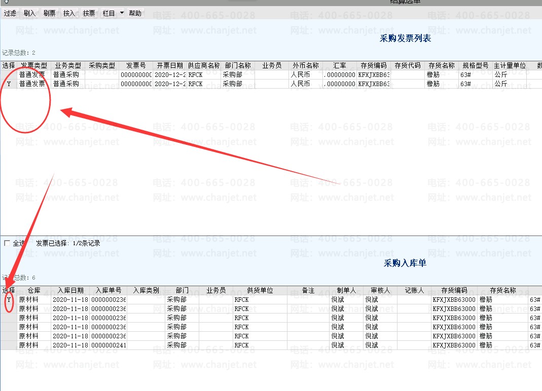 采购入库单所有的入库单都应该需要发票进行一笔一笔的结算核销。