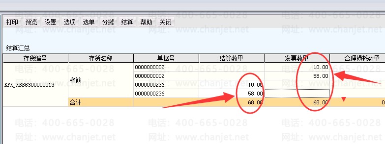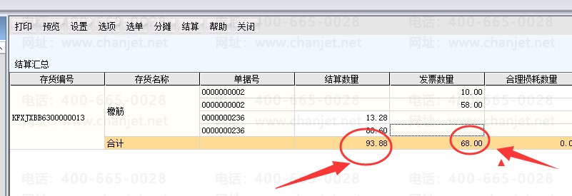这里我们可以看到发票的数量和结算的数量不一致,得按照发票的数量,修改结算数量。