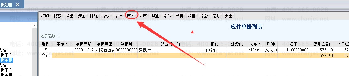 如果这里审核没有点,也可以后期在下面的付款单审核里面点开批量审核。