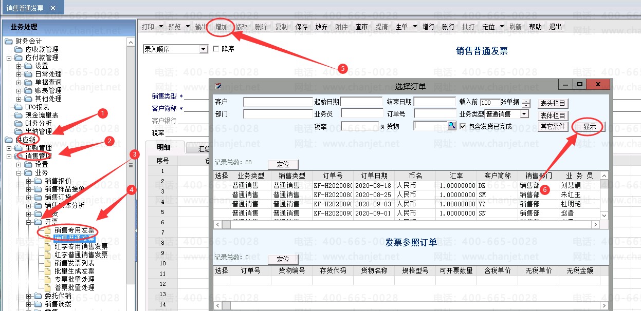 销售发票和采购发票一样的操作。你给客户开了发票之后,点开左边菜单找到销售开票---新增,然后弹出过滤界面,过滤一下客户和时间范围,点显示,然后就看到过滤出来的销售订单了。“选择”下面的空白地方选中需要生成发票的明细然后点确定。