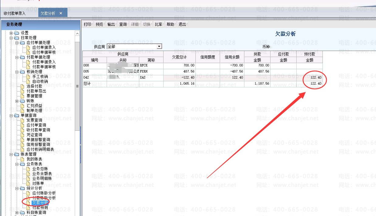 这个时候去看下欠款分析,会发现这个预付账款只有这么点了,其他的冲销掉了
