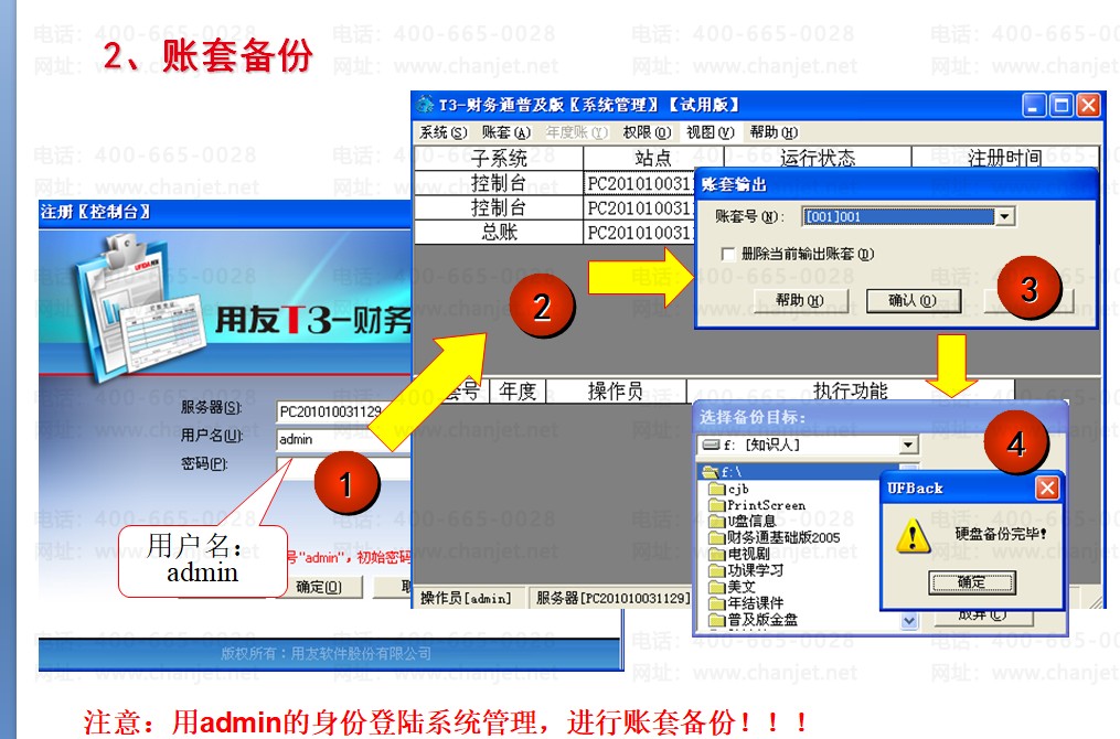 打开用友系统管理→用户名:admin初始密码为空→帐套→备份,一般有自动备份数据,最好手工备份一下