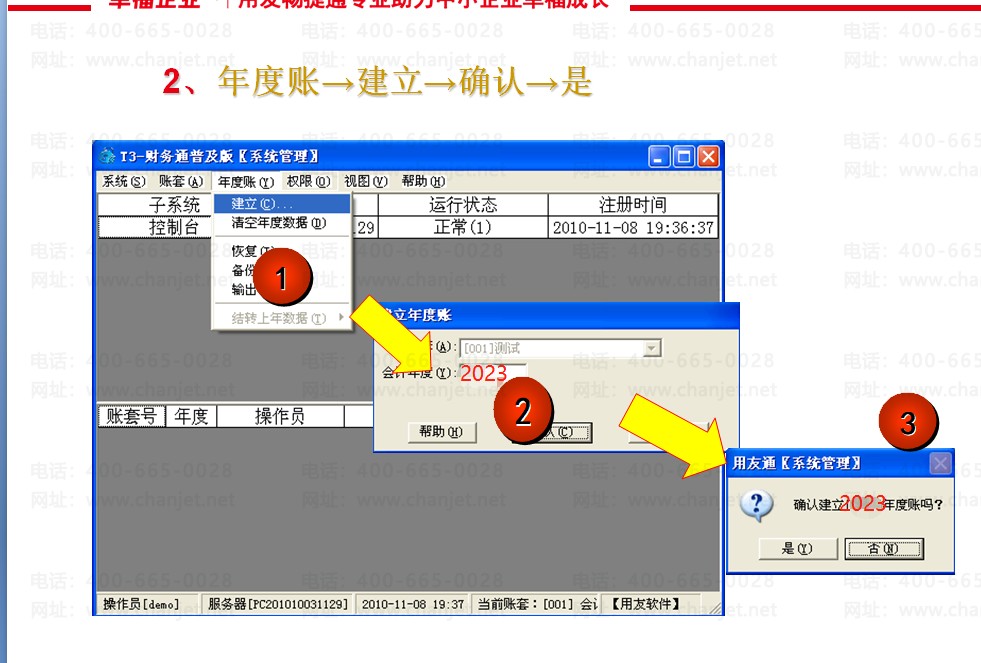 进入系统管理→年度帐→建立→“是”建立新的年度帐