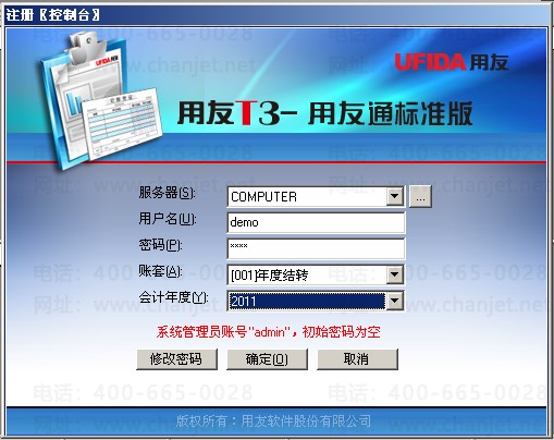打开用友系统管理→用户名为账套主管(如下图)建立年度帐(账套主管就是平时登录T3软件做账,总账权限的那个账号,不是ADMIN)