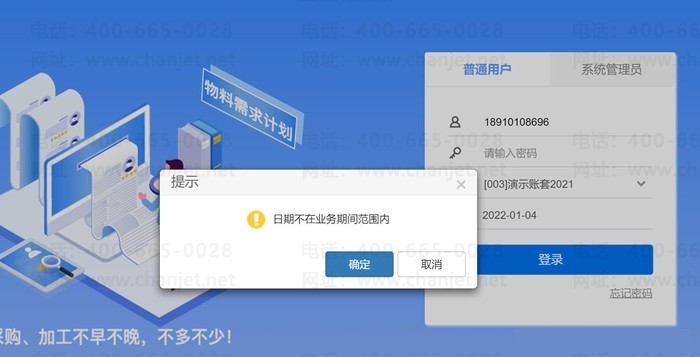 元旦后上班第一天,很多客户登录用友T+软件发现登录不上了,提示:日期不在业务期间范围内,这是怎么回事呢?