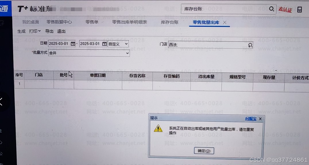 RT,选项里没有勾选批量出库,零售单应该是自动生成零售出库单,但是查询发现没有生成,手工进行批量出库,有如下提示,任务解锁也管用