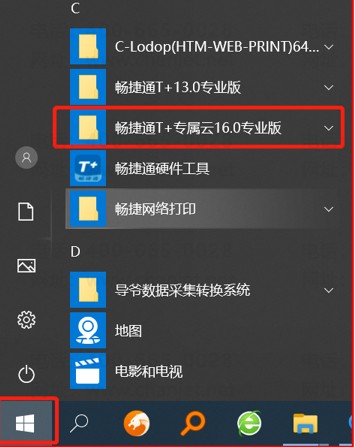 点击电脑左下角【开始】按钮,找到命名类似为【畅捷通T+专属云16.0专业版】的文件夹,点开后找到【T+服务管理器】,最后点击【切换iis】