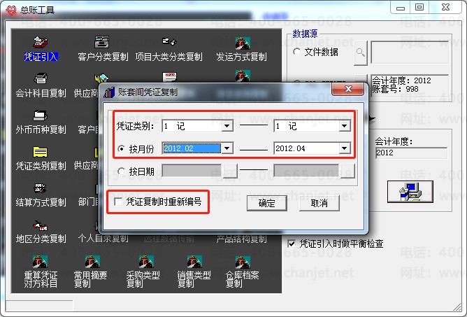 注:总账工具账套间复制账套,需要保证复制账套和被复制账套的行业性质一致,复制凭证的会计期间需要新账套中存在。