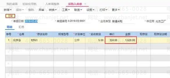 保存审核后查看对应的采购入库单:调整前是320一个,调整后改为324一个