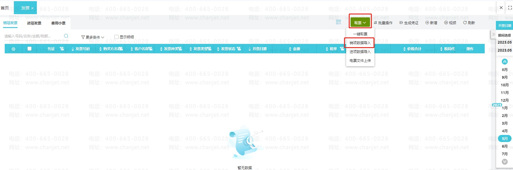 2、在点击【取票】下的【销项数据导入】