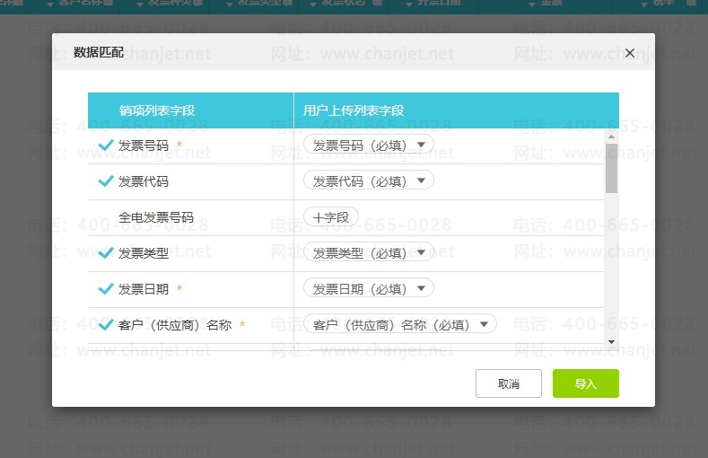 检查数据字段匹配,点击导入