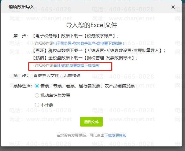 3、点击详细操作见百旺/航信发票数据下载指南,参考这个文档链接去下载销项发票