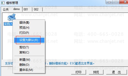 3、切换到当前操作员“demo”中右击空白处-“粘贴”,并设置为默认模板