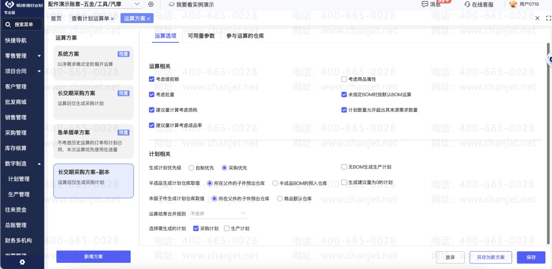 数字制造 - 计划管理 - 计划运算单:实现按单生产(MTO)的智能采购。