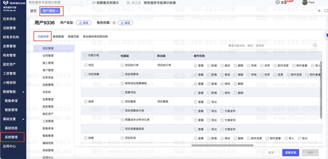 基础设置 - 系统管理 - 权限设置:为不同角色和人员(包括外部伙伴)设定严密的数据访问控制。