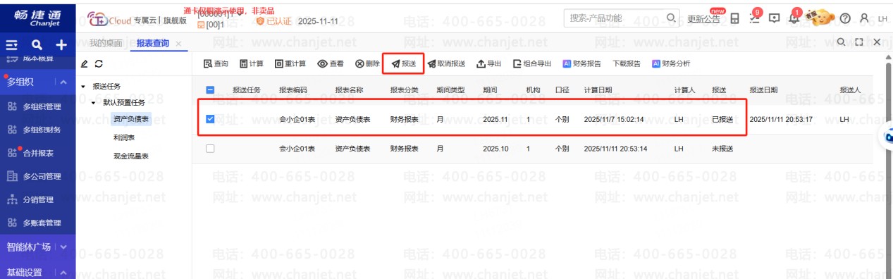 2、【报表查询】--【计算】对应月份报表,然后进行【报送】