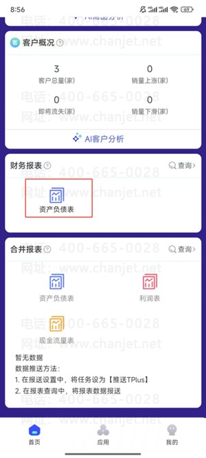 客户在使用软件时,不方便每次查询报表都去电脑上查,需要在移动端查询财务报表。有报表查询功能权限和报表任务数据权限的用户,可在Tplus上查看个别报表、合并报表。