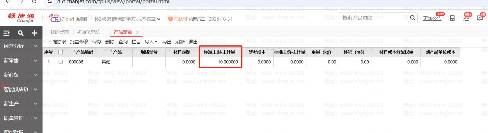 存货档案里修改了标准工时,【工时统计】里还是显示原来的标准工时,已经重新提取过了也不行。