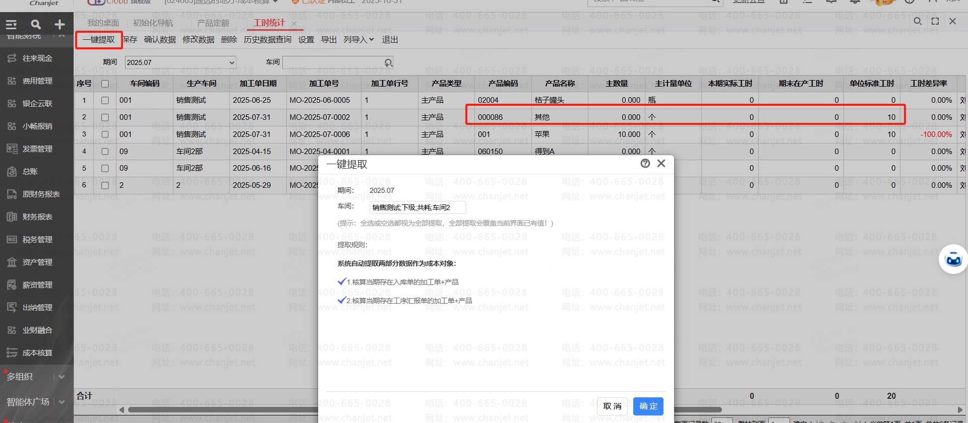2、【产品定额】里标准工时提取过来之后,再去【工时统计】里重新提取,提取完成即可将最新的标准工时带出。