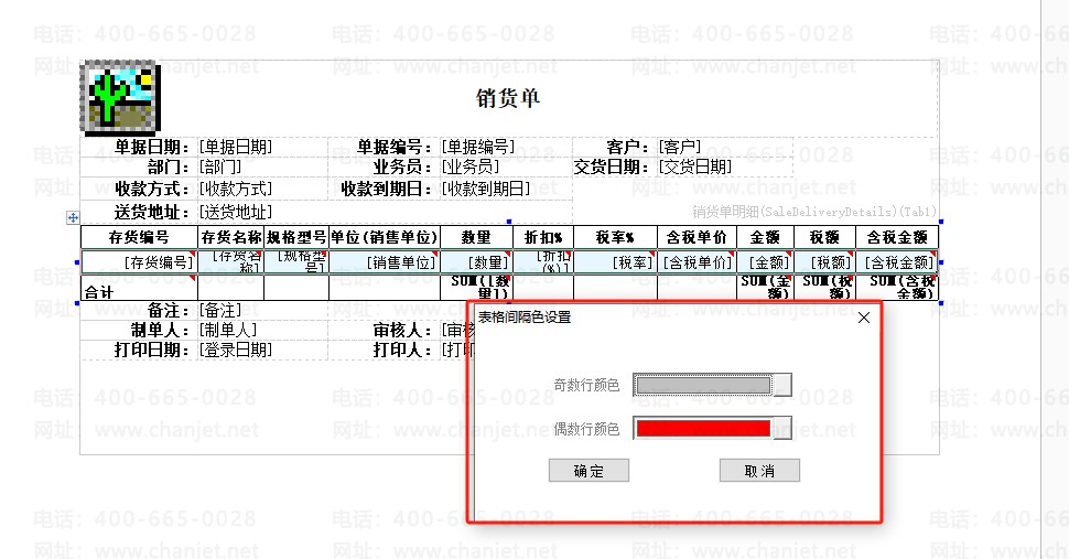 步骤二:点击明细--右键--表格间隔色设置,分别设置奇数行和偶数行的颜色设置,再保存模版