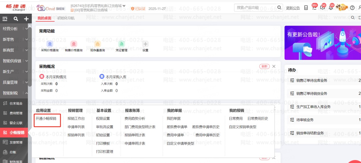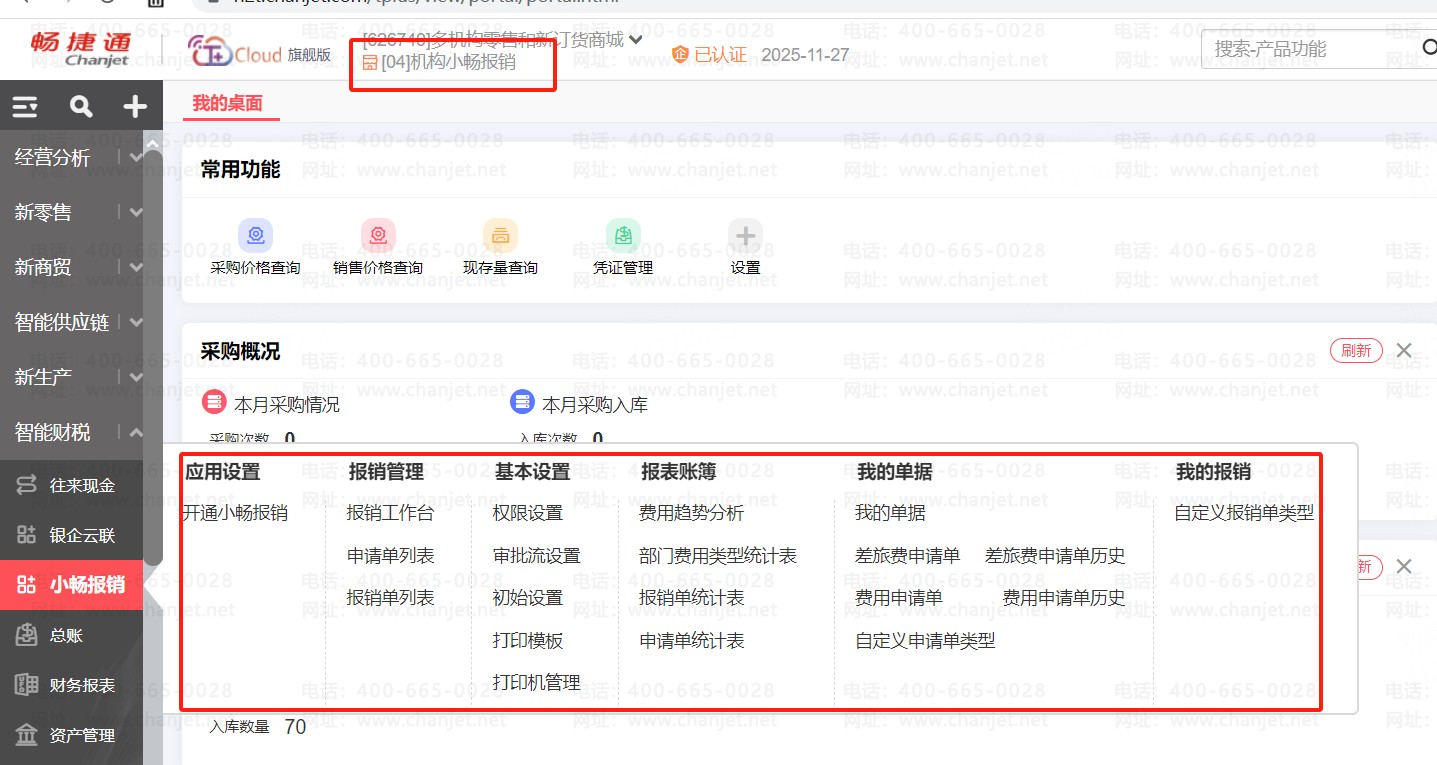 1、总部新建机构时,机构业务属性里勾选【小畅报销】