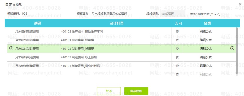 公式结转重点可以理解为:需先想好此结转模板的具体分录是什么→然后对此分录中每个科目取数的设置(通过编辑公式来设置),并且如果按公式结转设置只能选择末级科目,不能选择非末级科目,例如:制造费用各明细结转至生产成本-辅助生产车间中核算。