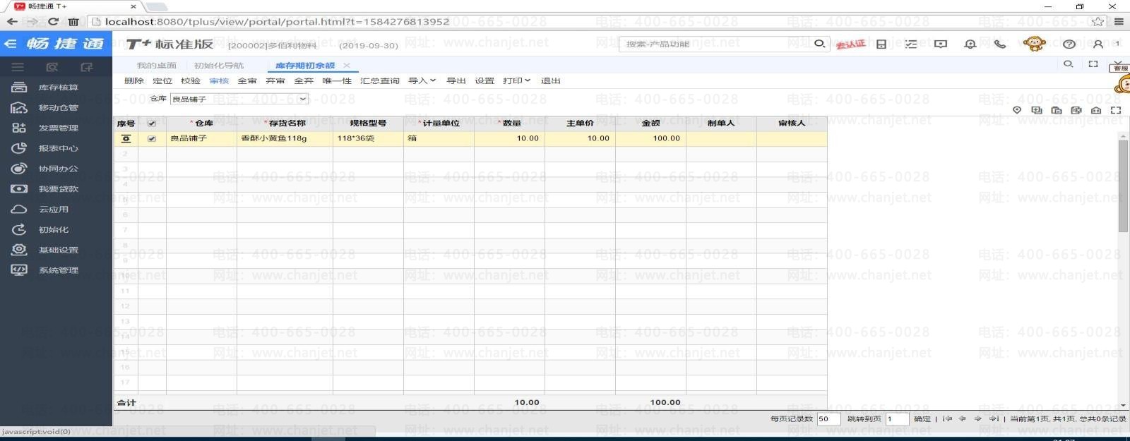 当在 T+初始化—库存期初余额录入界面录入存货的期初数量和余额后,点击审核按钮没有任何的反应,并且制单人一栏为空的并没有保存成功。