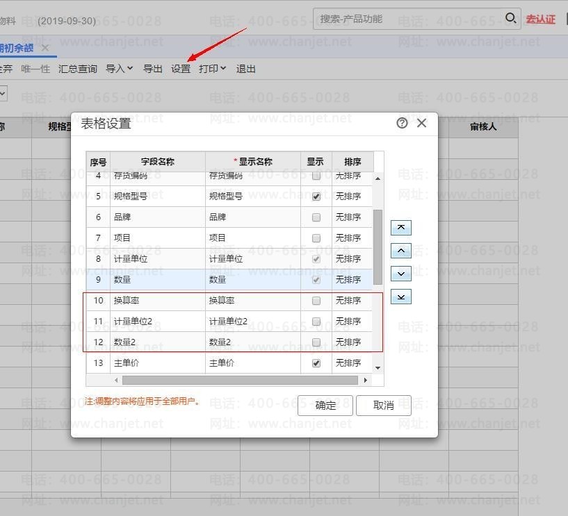 在库存期初余额--设置--那里将数量 2、换算率和计量单位 2 显示出来,如图