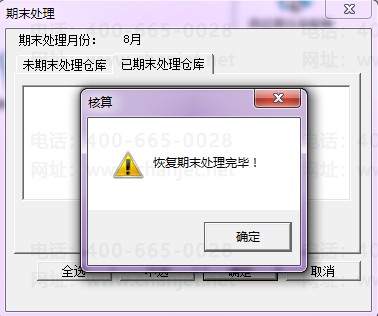 1、如果在9月份对核算模块进行取消月结后,直接取消“月末处理“则会提示:”登录日期不在本会计月中,不能执行此功能!“,所以需要登入到8月份取消月末处理。