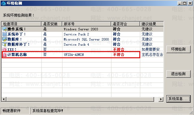 安装用友通软件时在环境检测步骤提示:计算机名称不符,该如何处理?