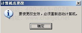 3、系统会提示需要重新启动计算机,点击“确定”,重新启动电脑就更改好计算机名称了。如下图所示: