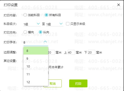 5.凭证打印,凭证打印只能整体缩放,不能设置字体大小