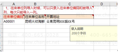 此时可以使用往来单位的列导入功能更新往来单位的【开票地址】和【开票电话】。