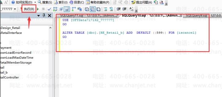 方法3、如果方法1,方法2操作均不成功,进入数据库软件的【企业管理器】-找到表“RE_Retail_b”,点击【约束】,找到约束名“DF__RE_Retail__iscan__64B800F4”,鼠标点击右键-点击【编写约束脚本为】-【DROP到】-【新查询编辑器窗口】