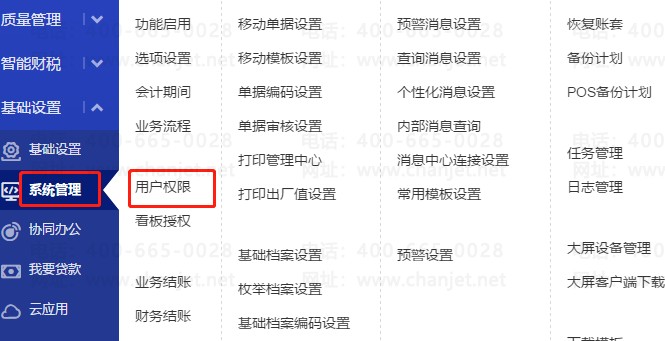 1、系统管理-用户权限,选择对应操作员所在的组,点击组授权