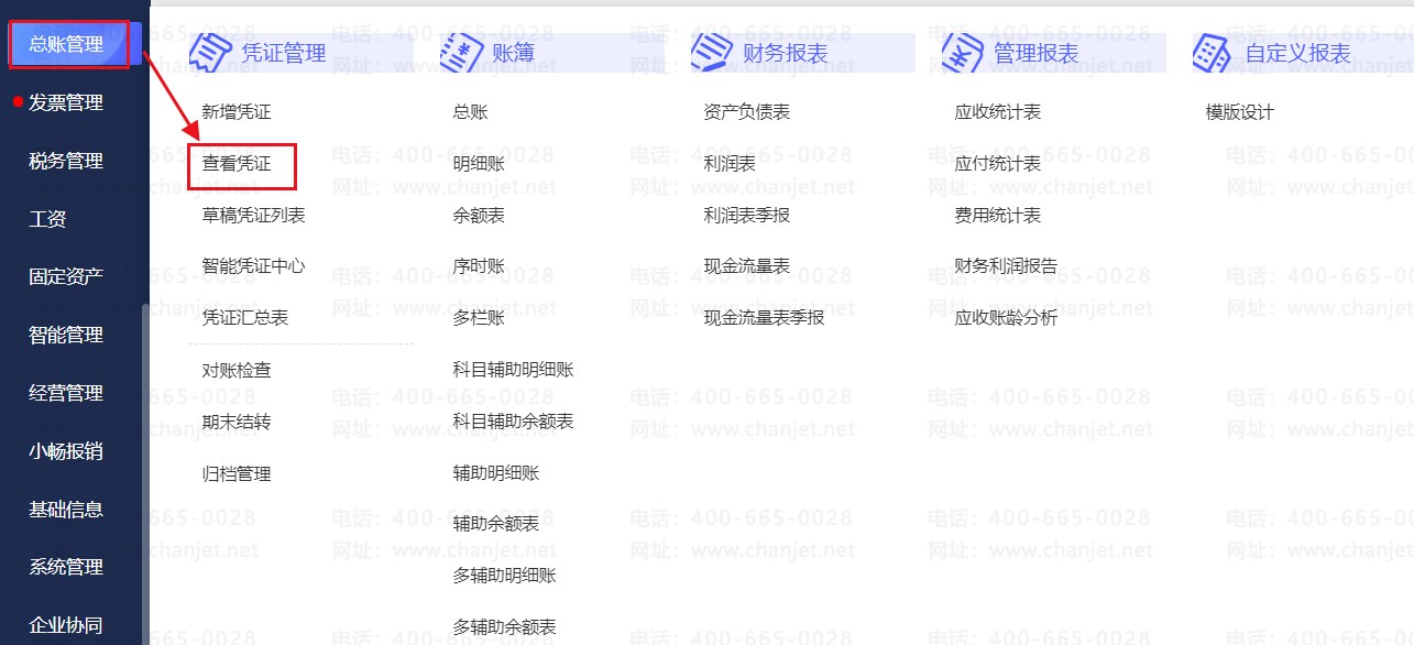 1、点击【总账管理】-【查看凭证】