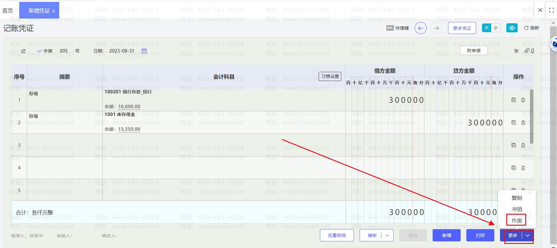 4、凭证显示【作废】