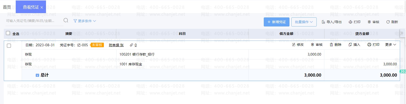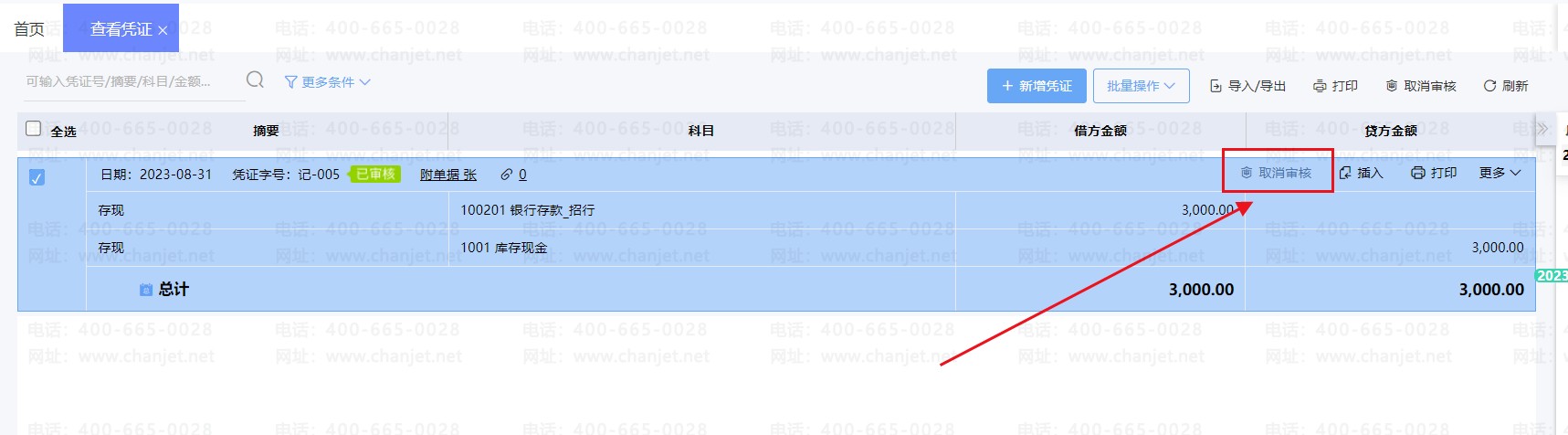 这是因为该凭证是已审核的,需要取消审核