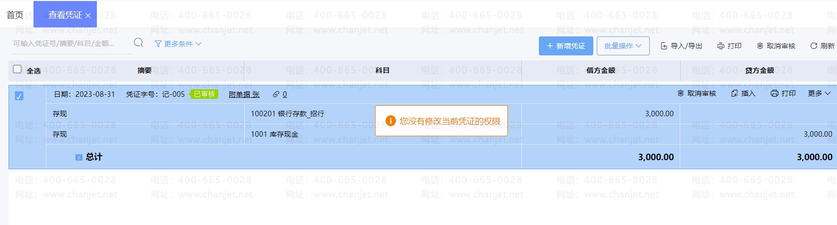 凭证作废提示“您没有修改当前凭证的权限”是因为什么呢?