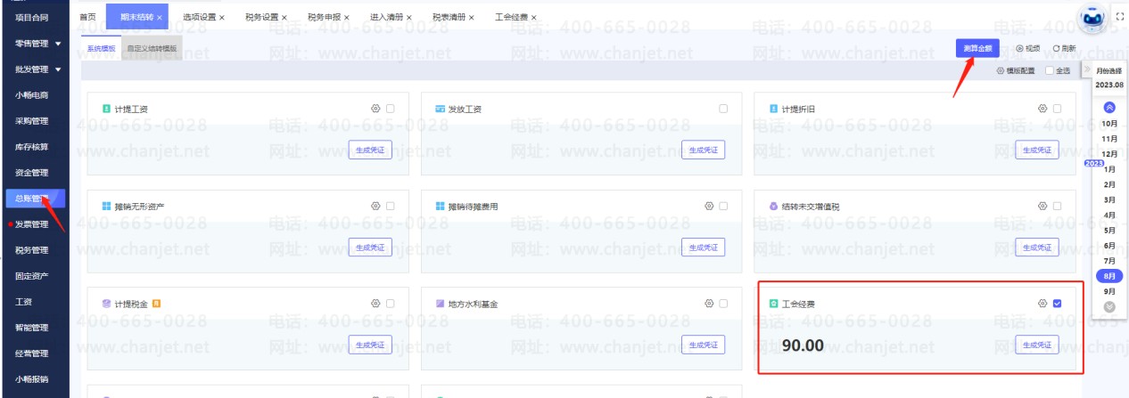 好业财软件中是可以自动计提工会经费的涉及的工会经费直接是在总账模块的期末结转生成。