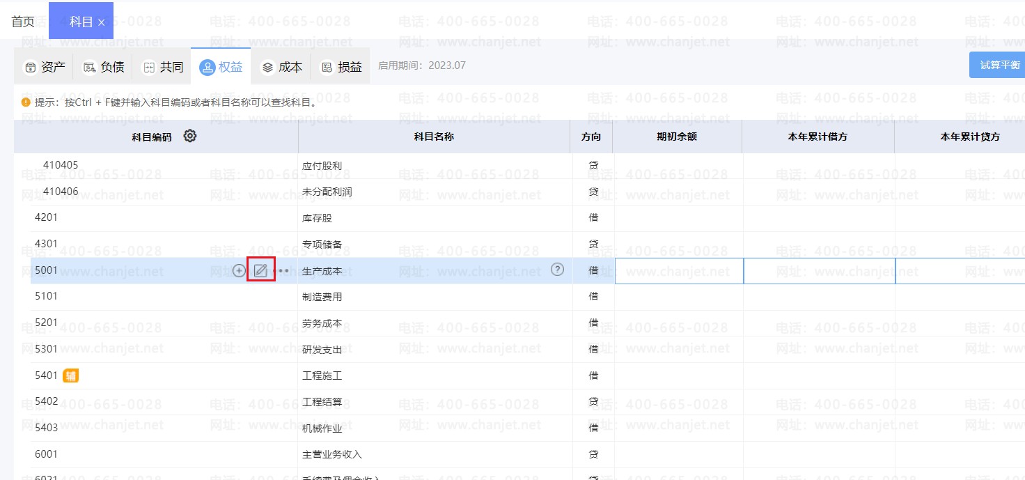 2、点击对应要设置多辅助核算科目前的小笔图标