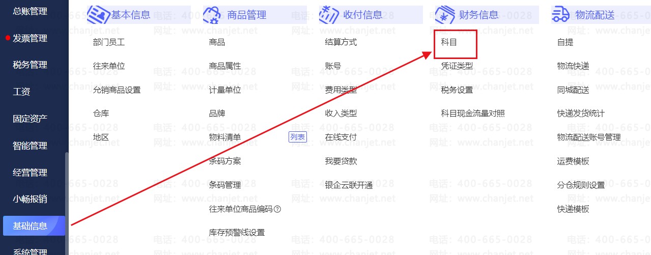 1、点击【基础信息】-【科目】